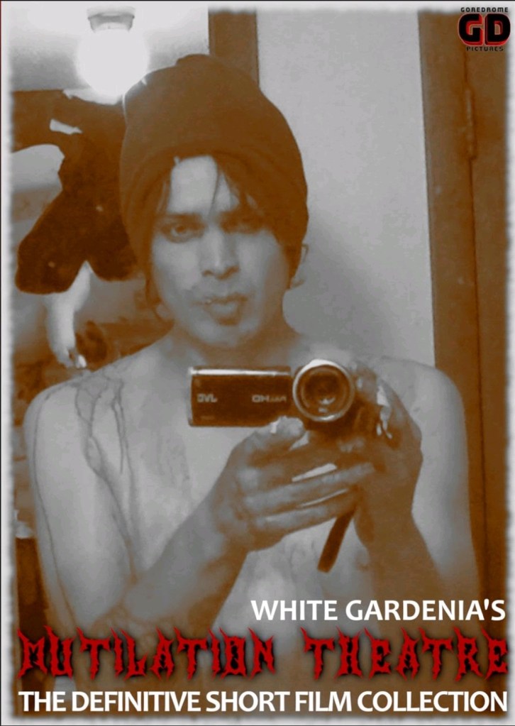 I’ve been a fan of White Gardenia (the underground artist collective helmed by controversial performance artist Daniel Valient) for quite some time now so naturally the idea of a definitive collection of their work was very appealing to me. Mutilation Theatre combines films from previous White Gardenia collections such as Blood Tastes Like Perfume and How to Raise Women from the Dead plus substantial additional footage. The film, released by Goredrome Pictures, comes in at a hefty four and a half hours and is billed as “The Definitive Short Film Collection”, which at that length it certainly should be. It’s definitely comprehensive but as far as definitive goes we’ll talk more about that a little later.